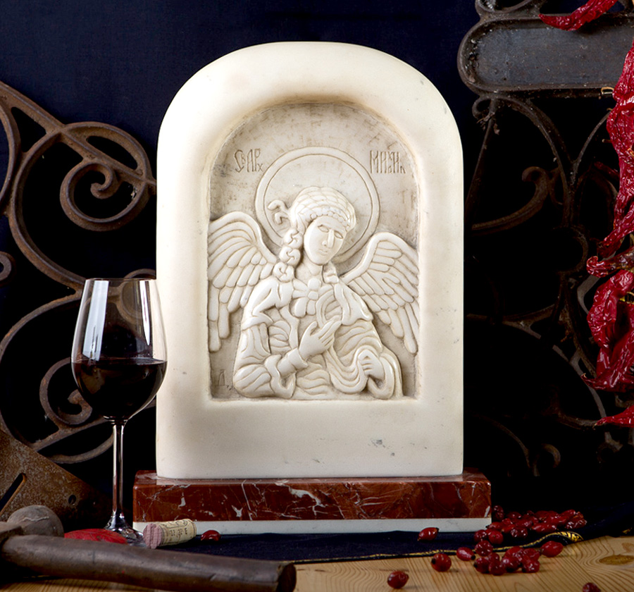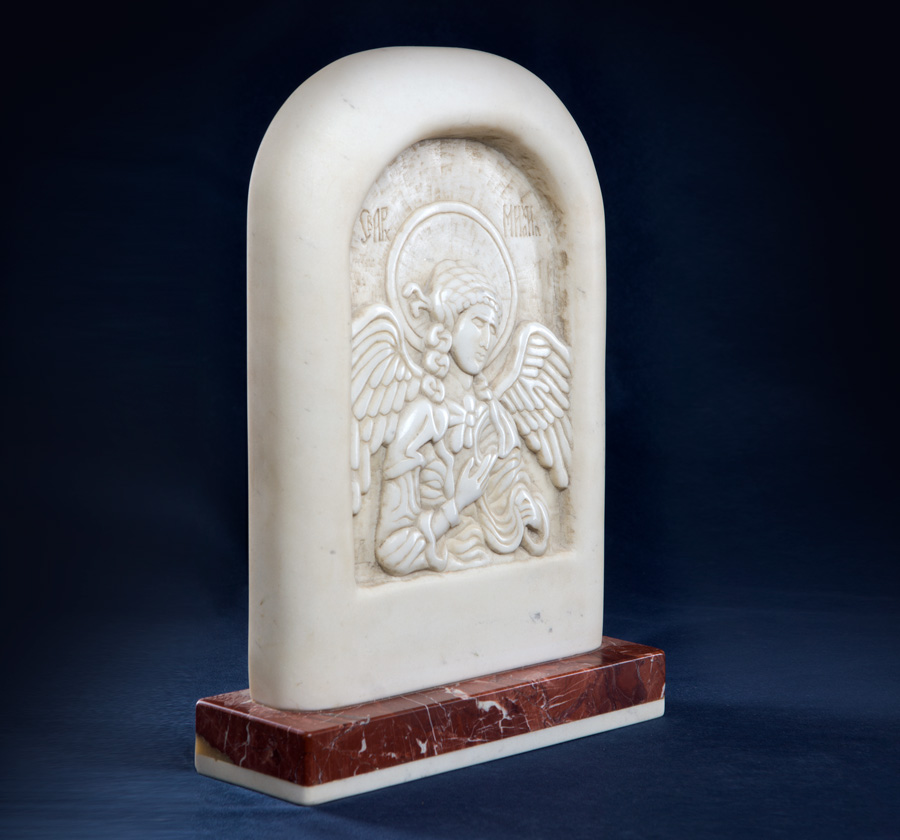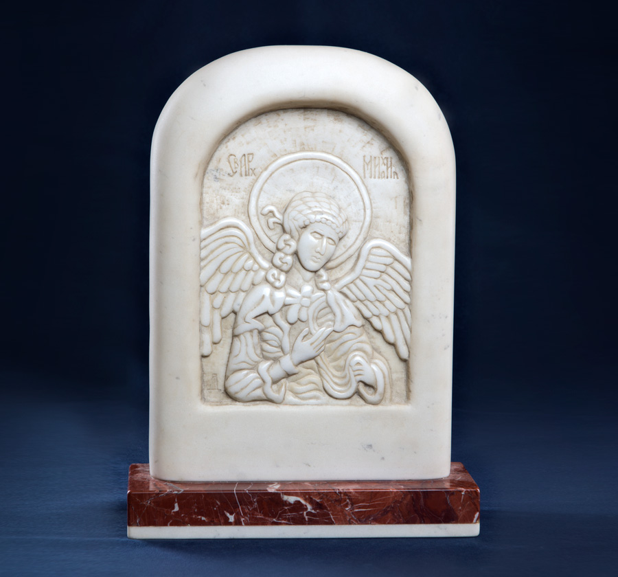 Christian icons were Mateja’s first inspiration. In Christian world an icon represents a tremendously important element in a relationship between a person, their family and the force majeure. Icon gathers and guards the family. It is a unique physical medium which enables direct relationship between a human and a saint impictured. This magnificent energy and the way it influences the family have inspired the artist to start exploring Byzantine iconography. Mateja has created his first Byzantine icon in ba-relief, the icon of Jesus Christ. In the following years Mateja continued crafting icons in different kinds of marble and inbreathing a subtle artistic note to each, while perfecting his craftsmanship at the same time. This is when many of his marble icons were created: Jesus Christ, St. Nicholas, St. Peter and Paul, St. Michael, St. Gabriel, St. George, The Virgin Mary, etc. Today Mateja Mijatovic’s icons adorn churches and homes across the world bringing peace and harmony to people around.